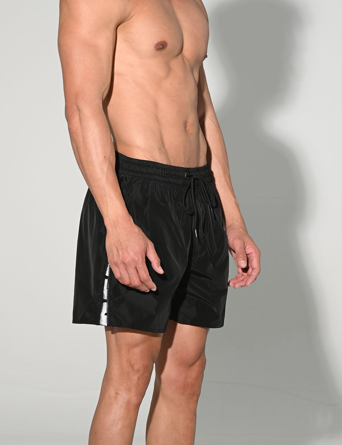 These shorts feature an elasticated drawstring waist.